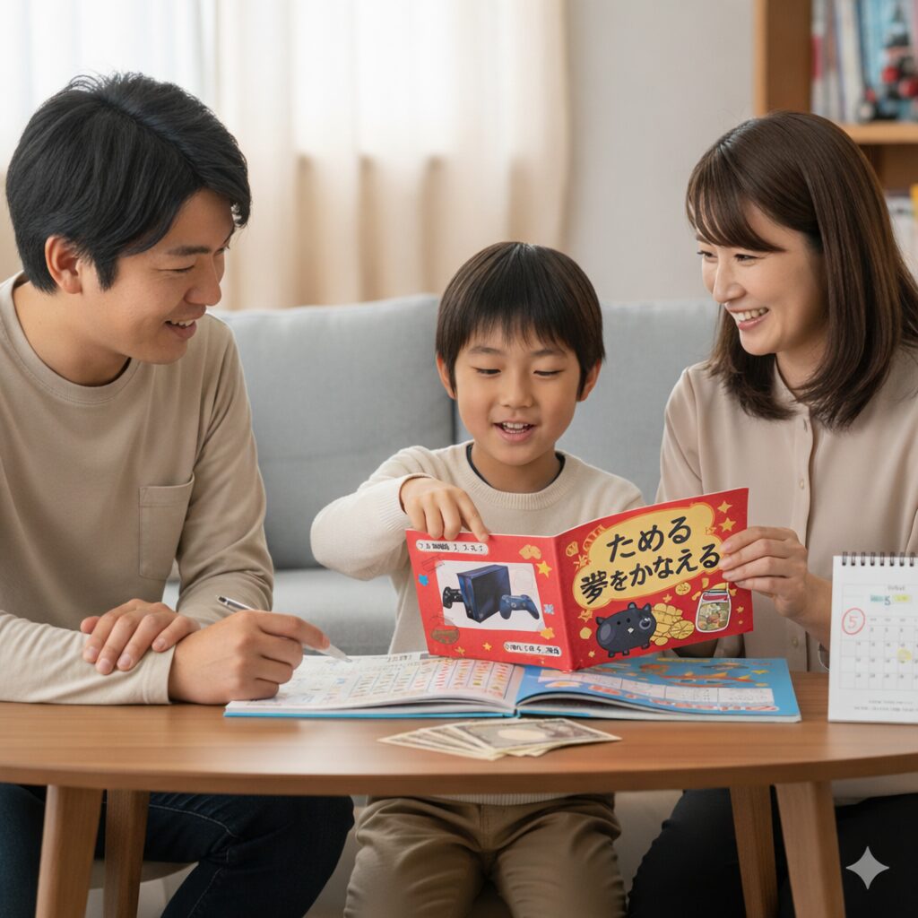 ポイント: 目標の写真を貼っておくと、ワクワク感が持続します。我慢ではなく、夢を大きくするための投資だと教えましょう。