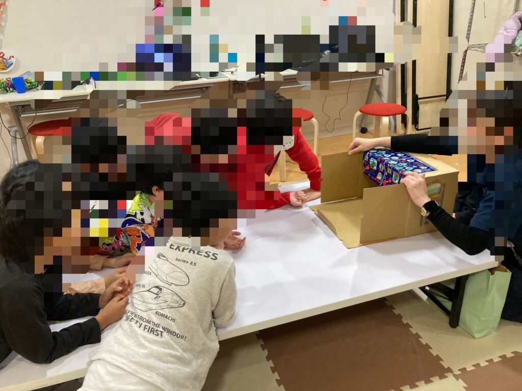 正解が分かって、箱から「ぬいぐるみ」や「こんにゃく」が出てくると、「えー!それだったの!?」と大爆笑!想像力と集中力、そしてお友達を応援する優しさが見られた”素敵な時間”となりました。