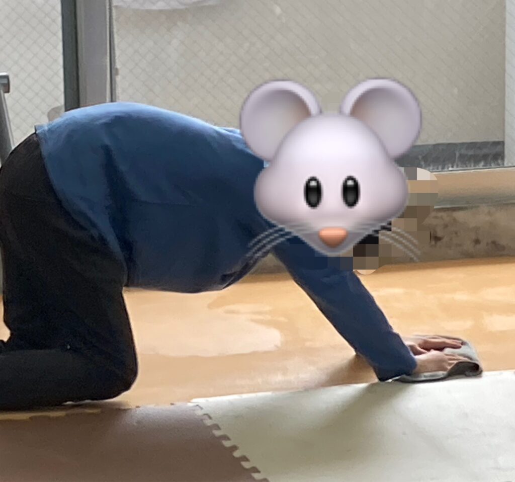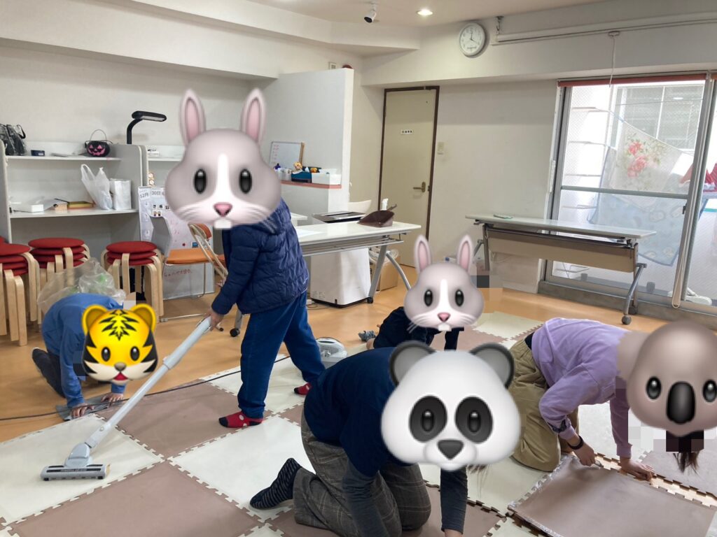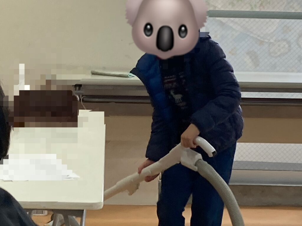 支援室に敷いてあるマットを全て取って洗ったり、掃除機で眼に見えるゴミやホコリを取り除いたり、そして雑巾掛けにも取り組みました。