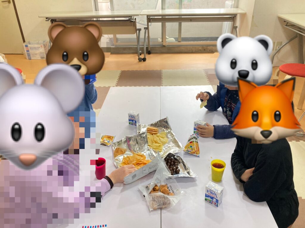 今回、大掃除をした後は、子どもたちの楽しみの”お菓子パーティー”を行ないました🥳