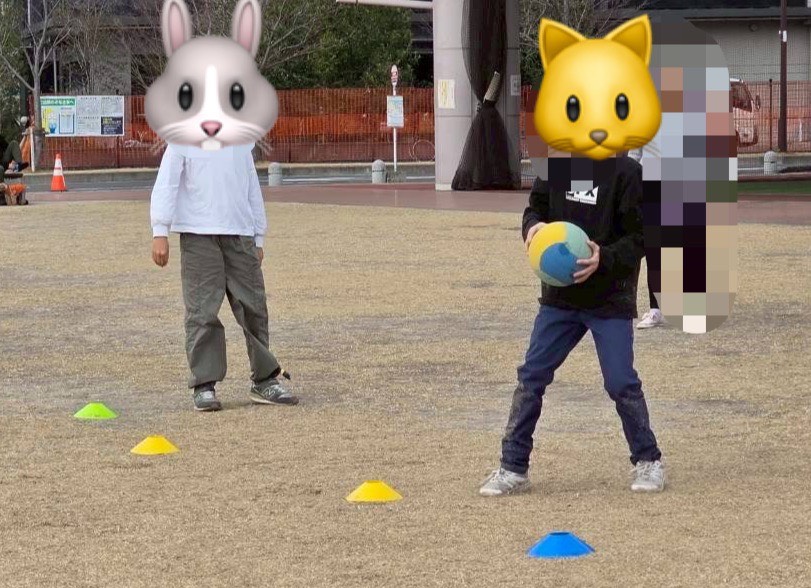 公園に着いてすぐ、マーカーコーンを並べてドッジボール大会がスタート! 必死にボールから逃げる子、力いっぱいボールを投げる子……それぞれ全力で楽しんでいました。