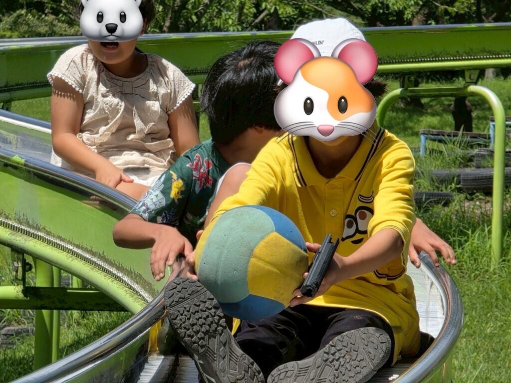 その他に、ローラーの付いた滑り台🛝で、みんなで並んで滑ったりして、何回も楽しむ姿も。