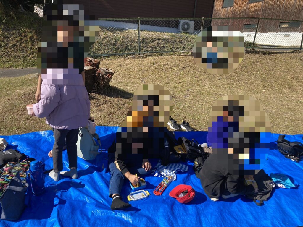 公園の後は、丁度お昼どき。神社となりの公園にて、ブルーシートを引いて、お昼ご飯🍱を食べました。