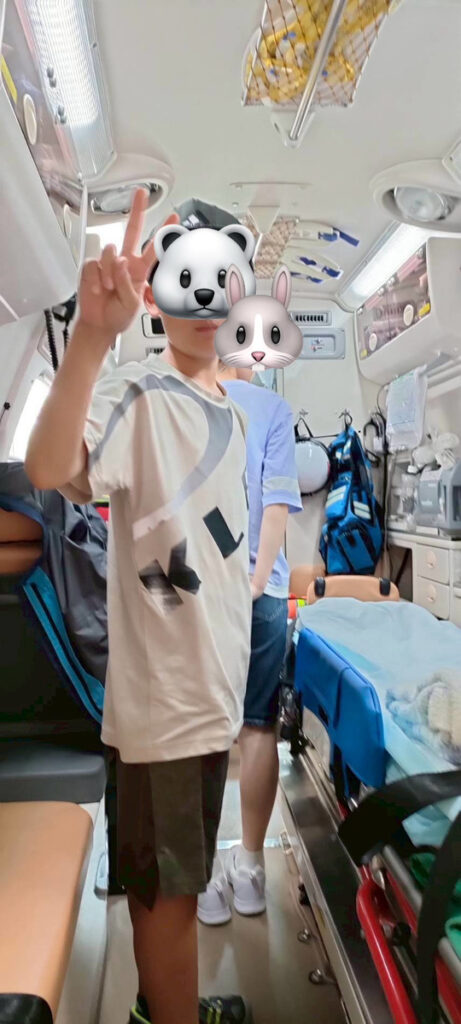 「救急車の中、こんな風になっているんだ~」などと話してたり、不思議そうな表情を浮かべている子もチラホラと・・・