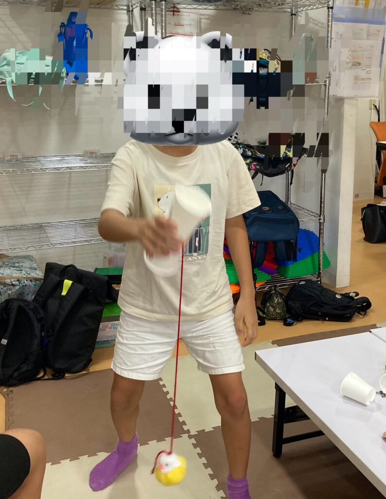 今回のブログは、夏休みでの活動で実施した「紙コップけん玉」の取り組みをご紹介します。